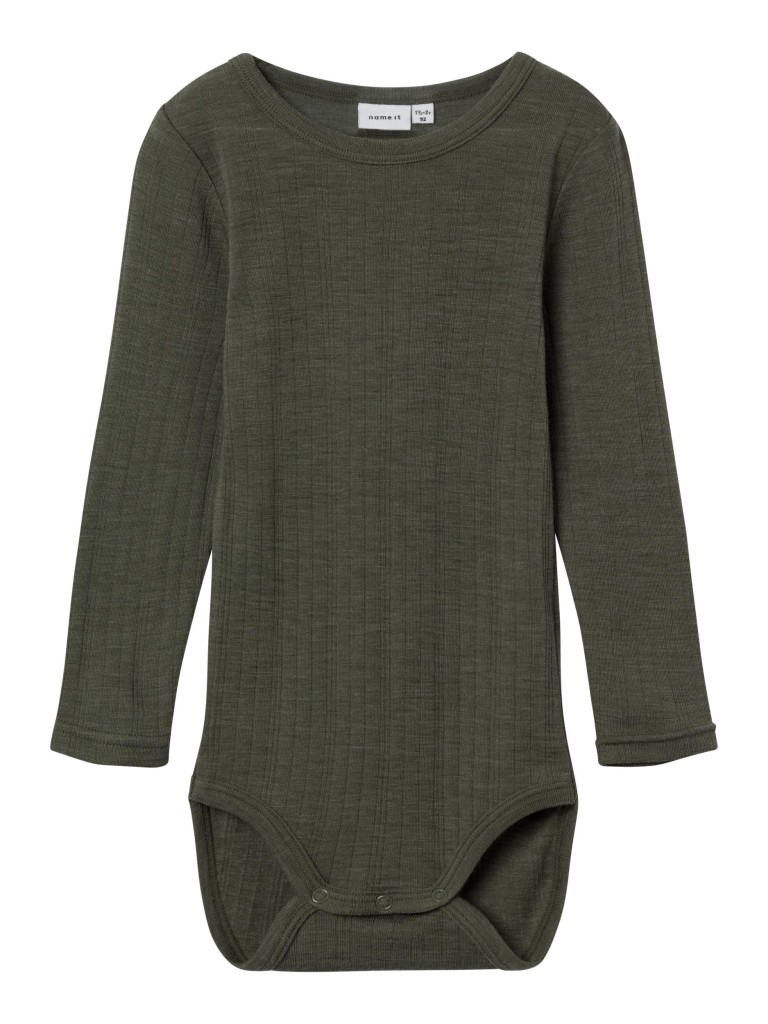 Lækker Hummel body til dreng. Den er i lysgrå med mørkblå og hvide nuancer på front. Den har lange ærmer, O-hals og praktiske trykknapper på den ene side og ved gylp.