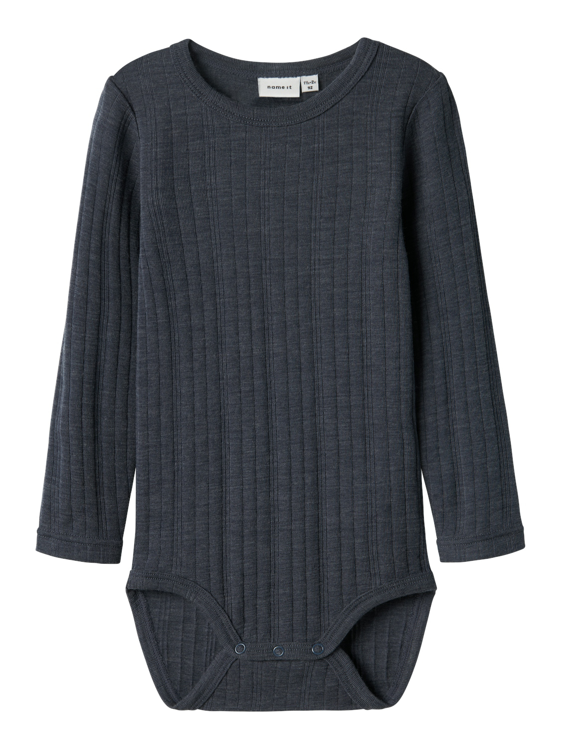 Blød uld body fra name it med lange ærmer. Bodyen lukkes forneden med trykknaplukning.