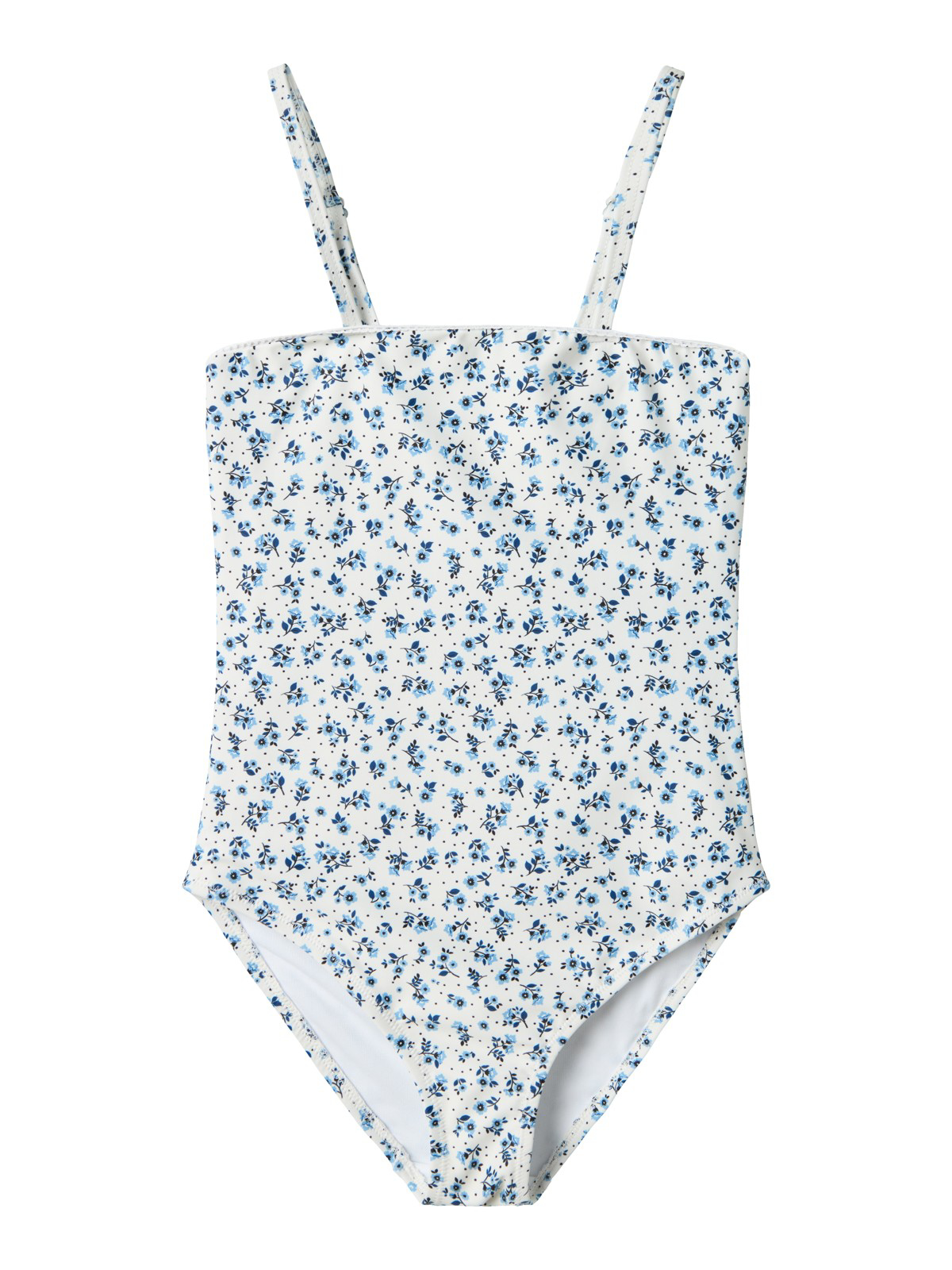 Bikiniens overdel er en crop top model med brede stropper med bryderryg.