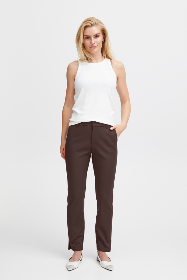 Klassisk pæn 7/8 buks fra Culture. De har et slim/ regulart fit og en almindelig talje. Fast linning foran og elastik i livet bagpå. Skrålommer og paspolerede baglommer. * 50% Bomuld * 46% Polyester * 4% Elastan