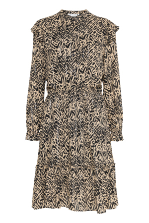 Smuk Culture kjole med et flot sort blad print. Kjolen har et løst flatterende ærme, en fin v-udskæring og lommer i siden. Den har en begalig pasform og er knælang.