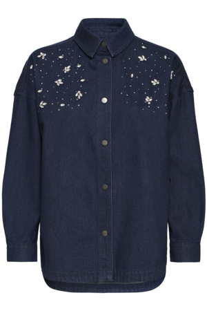 Flot klassisk skjorte fra Culture med fine detaljer. Den har krave med sspidse flipper, smukke perlemors agtige knapper, manchet på ærmet . Indeni nakken er en sød blondekant. Skjorten har lidt længde og er derfor flot at bruge under dine strik.