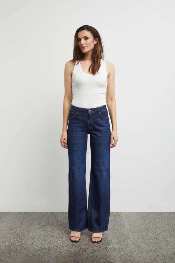 Vega er høj taljet jeans fra Pulz med wide legs. Jeansene er 5 lommet og kommer i en flot mørk denim vask. Benlængde 30. Bemærk at vi også fører denne jeans i længde 32.