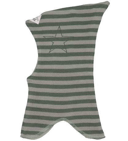 Så fin og skøn en Racing Kids elefanthue i stribet grøn og støvet grøn med en broderet stjerne. Elefanthuen har en spids hovedform, og den har et praktisk splitdesign i bunden. Ved ørerne er der praktisk vindstop med et ekstra, isolerende lag, som beskytter ørerne mod vinden.