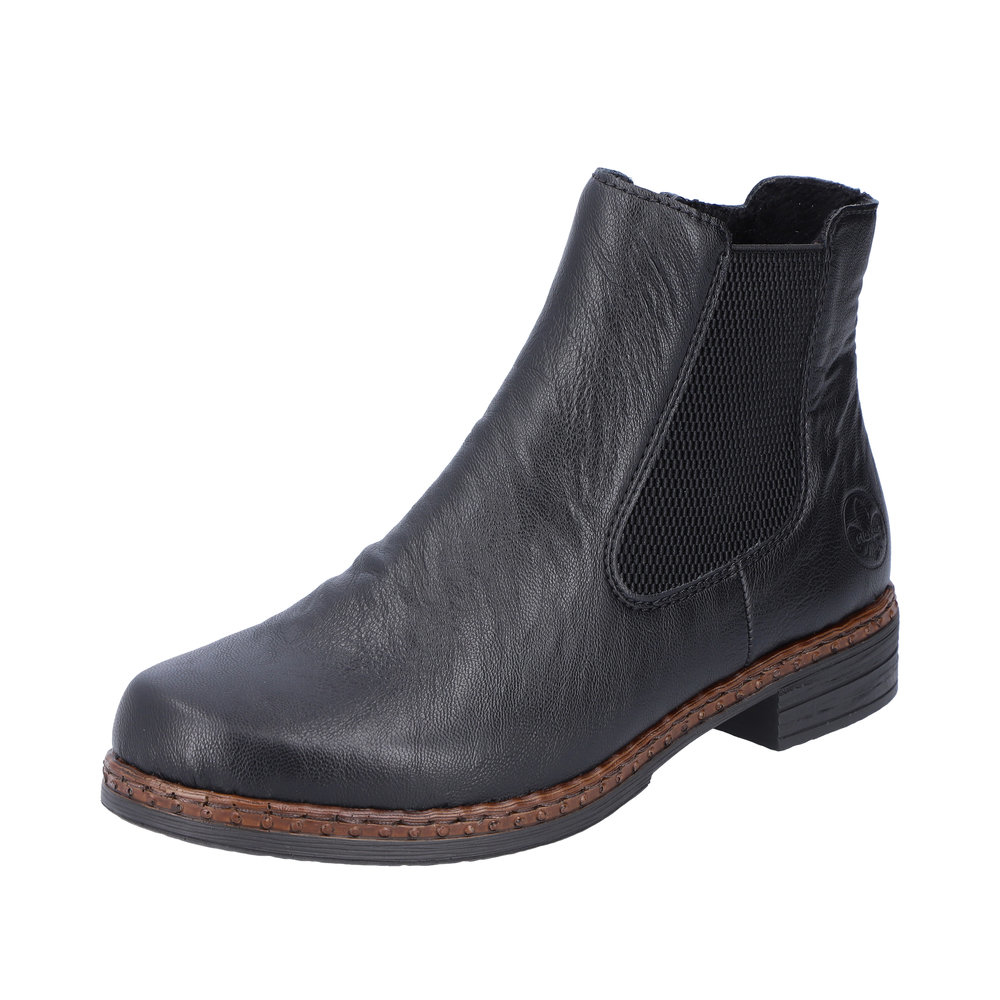 Sort støvle med let foring. Støvlen har elastik på udvendig side og lynlås på indvendig side, så den er let at få på.