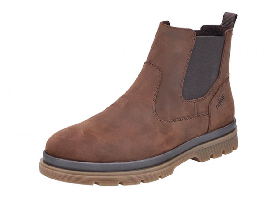 En flot Rieker støvle til herre i brun. Støvlen er med fine detaljer langs siden og bagpå samt en mørkere nuance på snuden, der giver et smart touch. Støvlen lukkes med lynlås i siden og snørres.