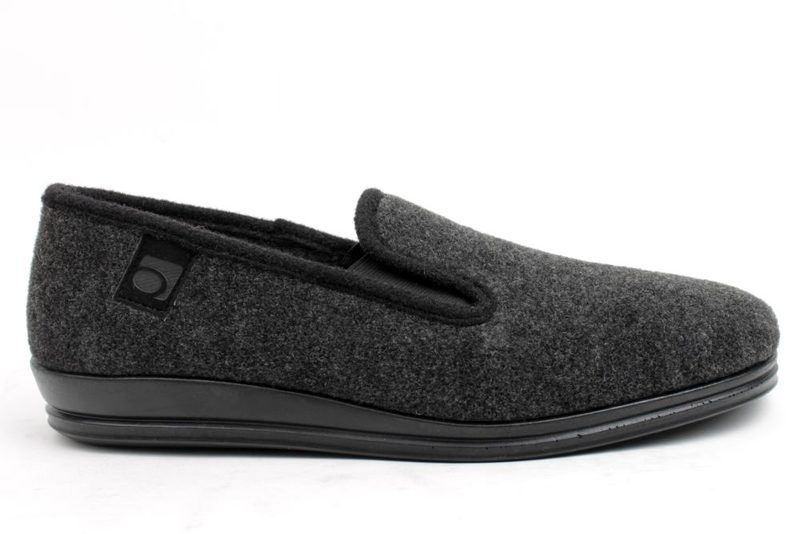 Let og varm hjemmesko i filt i en flot grå mørk antracit farve. Den er med en kraftig sål, så den kan bruges udenfor til at tømme posten m.m. Modellen er lavet af et lækkert filt materiale, som sørger for at holde fødderne varme hele dagen.
