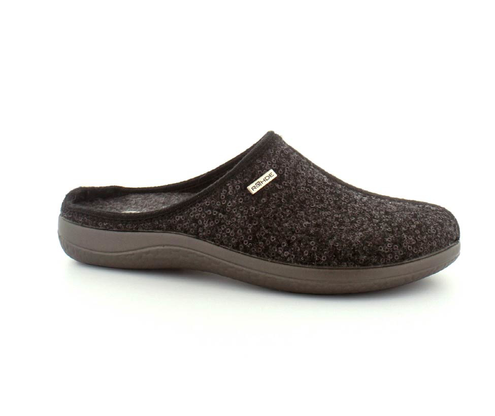 Filtsko af 100% ren naturlig uld i klassikerfarven koksgrå med en sål af semi-vegetabilsk garvet kalveskind. Hjemmeskoens pasform følger fodens konturer og søger for, at den forbliver på foden. Skoen er smidig, og uldens egenskab til at optage fugt bevirker, at fødderne altid føles varme og tørre.