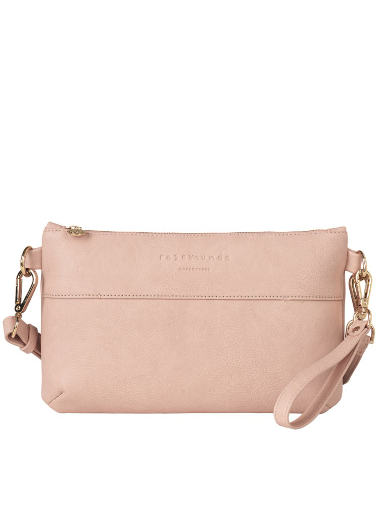 Mindre Clutch fra Rosemunde med aftagelig og regulerbar crossbody-rem. Clutchen er designet med lynlåslukning, en indvendig sidelomme med plads til kreditkort.