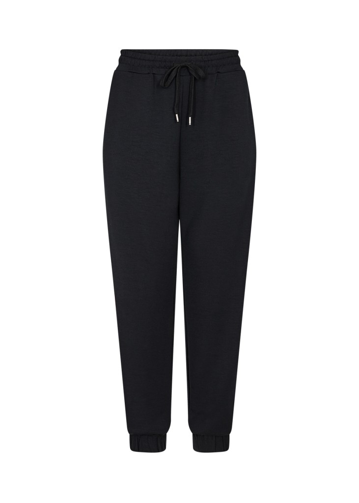 Super lækre, bløde sweatpants fra Soya Concept i en blød kvalitet. Den er fra Banu Serien og buksen fåes i denne sæson i sort og petrol. Den har et bredt elastik med bindebånd, samt elastik på benkanten.