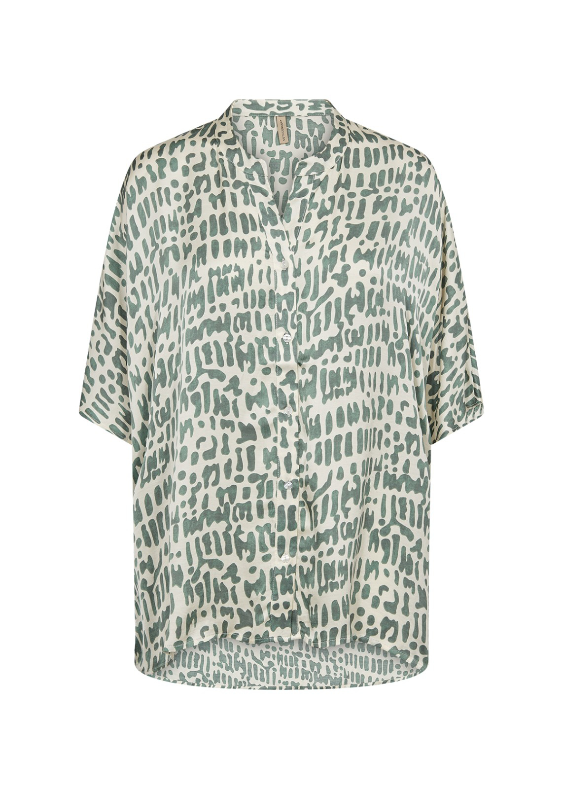 Smuk viskose bluse fra Culture i skønne forårs nunancer. Blusen et kort løst ærme med flæsedetalje, en fin v-udskæring og en løs pasform. Style den til shorts, hørbukser og jeans alt efter lejligheden.