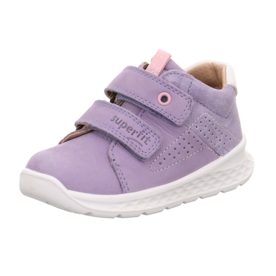 Super smarte Bisgaard sko i rosa skind. Skoen lukkes med 2 praktiske velcroremme og er beklædt med lækkert, blødt skind. I bunden er der en blød, ergonomisk lædersål.