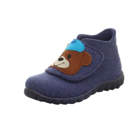 Fine Superfit hjemmesko i navyblåt uld med velcroremmen i form af en grå mus. Superfit hjemmeskoene åbnes med en bred velcrorem over vristen. Hjemmeskoene er fremstillet af blødt, men fast tekstil, og så er de perfekte at gå i derhjemme.