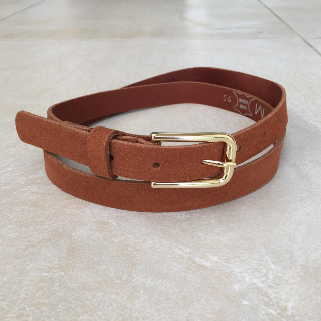 Smalt bælte med et smukt guld spænde. Bæltet er som et smykke i sig selv.