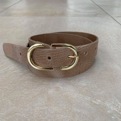Bælte i ægte læder i en flot kit farvet nuance med et super flot og dekorativt spænde i guld.