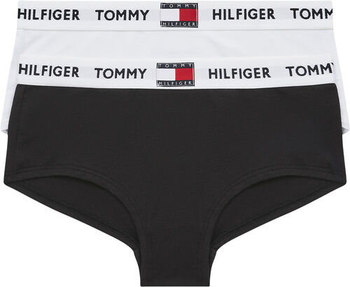 Super fine Tommy Hilfiger hipsters solgt i en 2-pak med to forskellige designs. Tommy Hilfiger hipsterne har en bred elastikkant i livet, som sikrer en god pasform.