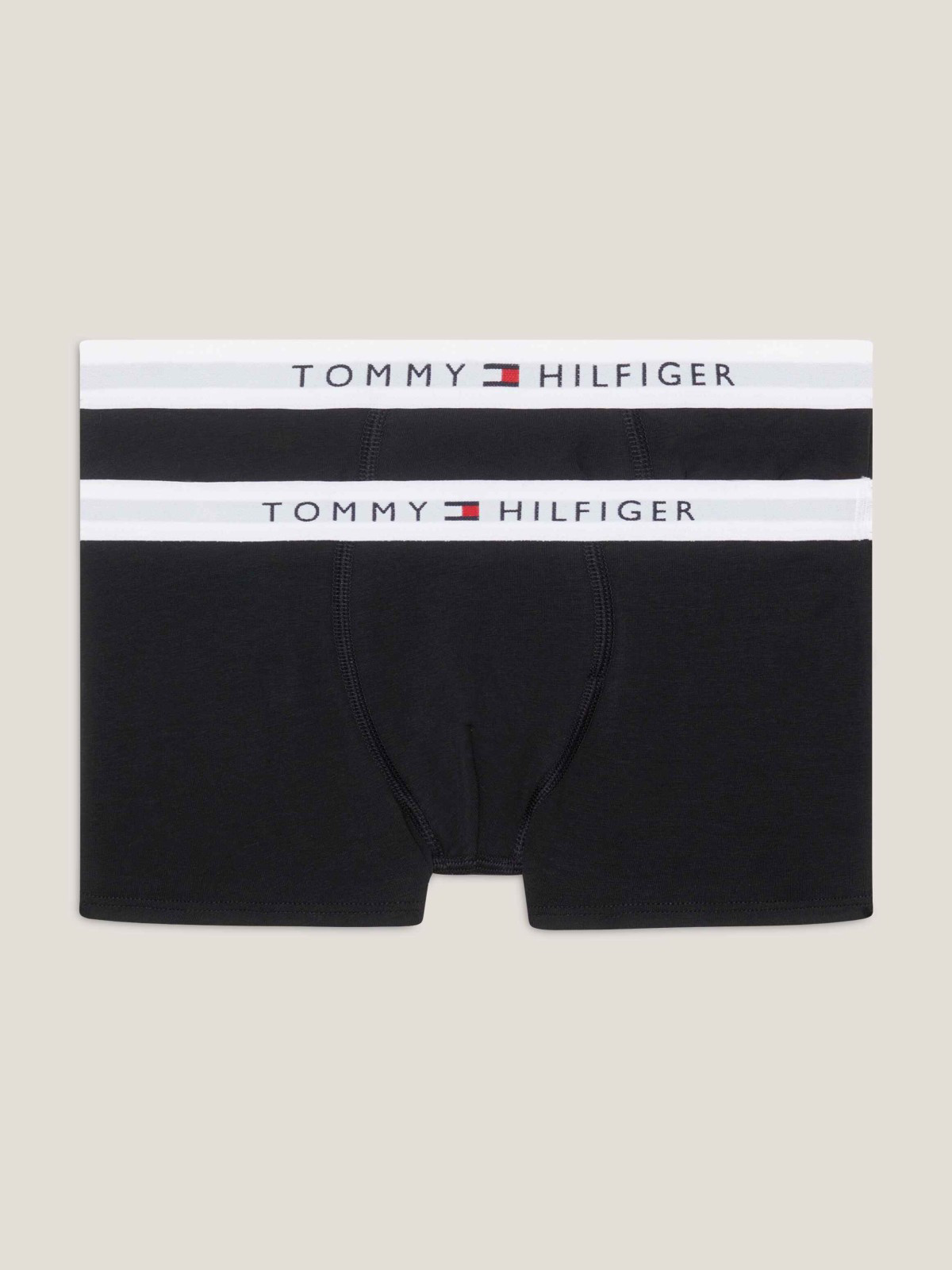 Super smarte Tommy Hilfiger 2-pak boxer trunks til drengene. Boxerne er i en flot navy med stort elastikkant i sort og med TH logo eller i sorte begge to. De kommer i en fin æske med 2 stks.