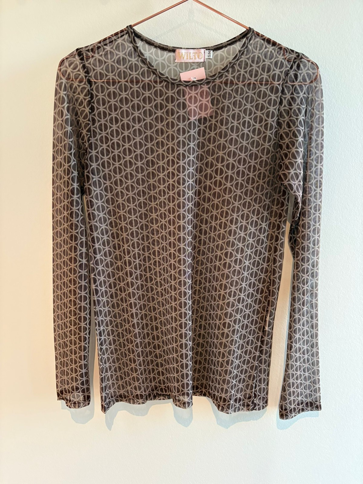 Smuk og elegant sort mesh bluse fra Culture. Blusen har en høj hals, transparente mesh ærmer samt påsyede blomster på kroppen. Brug den til et pa sorte buksker for et sofistikeret look.